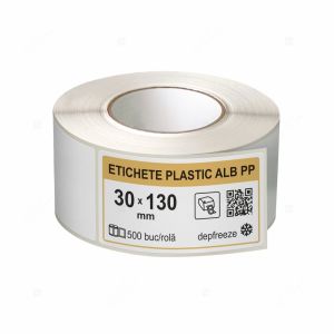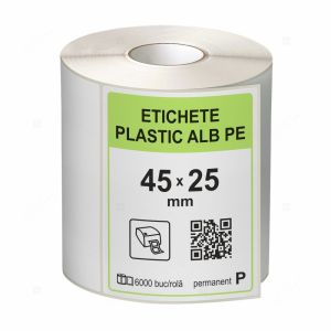 Material sintetic flexibil, potrivit pentru aplicații unde există umiditate sau contact cu produse lichide. Etichetele din PE se mulează bine pe suprafețe curbate și rezistă la rupere, fiind utile în industria cosmetică, alimentară și chimică.